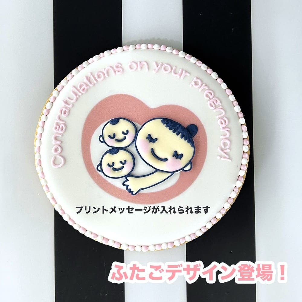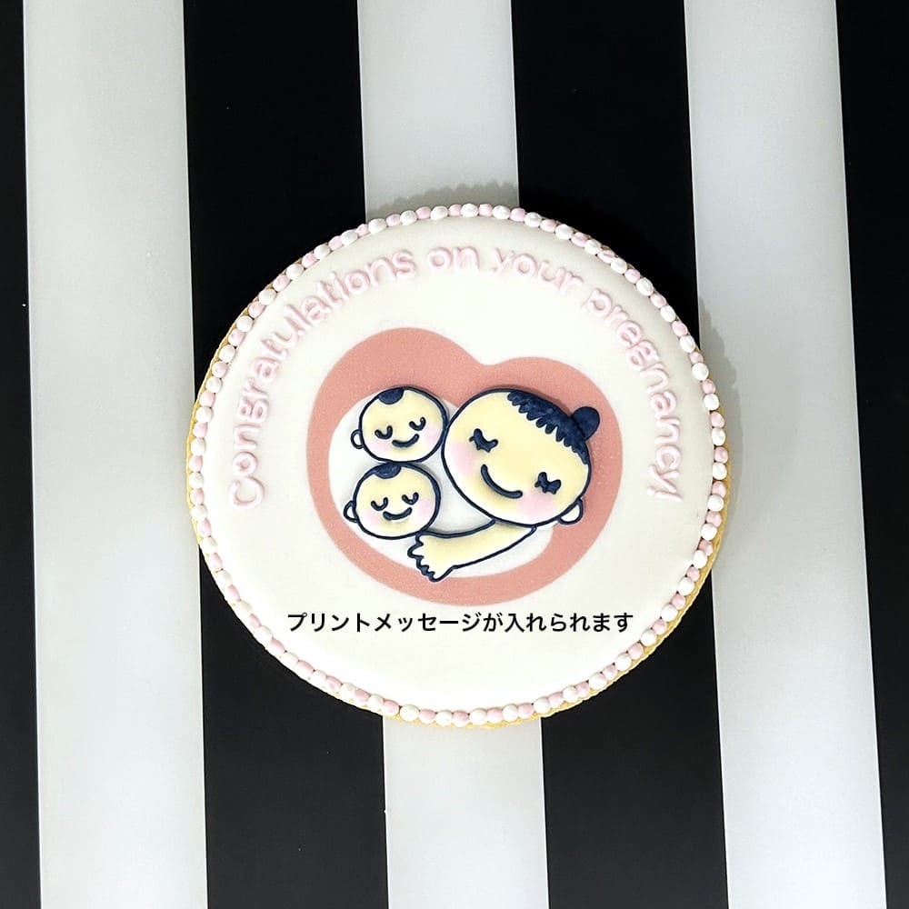 マタニティーマークのアイシングクッキーに、お好きなメッセージをプリントできます。