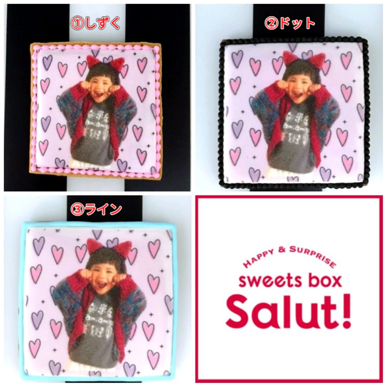 ①クッキーの周りにデコフレームをお付けする事ができます。(1枚あたり54円)